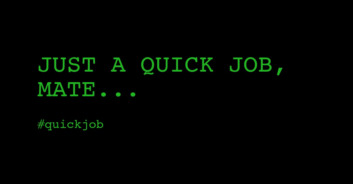 ME: “I have learned that the ease with which the phrase ‘quick job’ is bandied around, is inversely proportional to how long the job will actually take.”