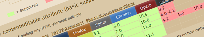 The first point of reference is finding out which aspects of HTML5 work in which browsers (so far).