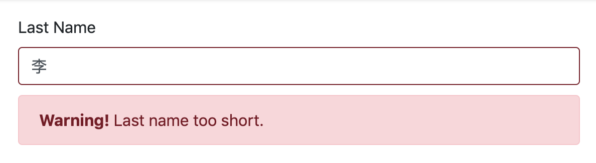 This is yet another reminder of the fact that just because you aren’t localising in other languages than English, you still need to properly internationalise your application. It’s not a good user experience to tell someone that their name is invalid.