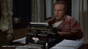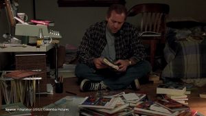 ‘The Shining’, another classic King book to big screen adaptation, features Jack Nicholson as writer Jack Torrance. In the film, the writer secures a caretaker job at the Overlook Hotel in order to write in solitude. A month into his stay, the onset of writer’s block is a precursor to Jack’s increasing frustrations and a predilection for sharp objects.
