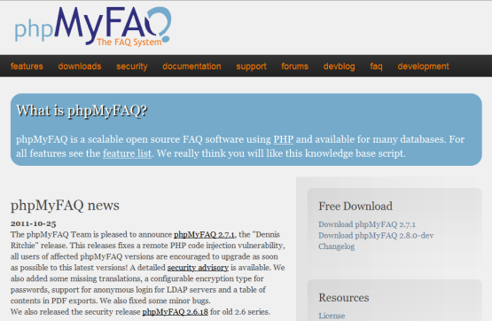 Add an FAQ or knowledge base to your website in seconds with phpMyFAQ. It’s easy to get set up and running, and you retain full control over the look, feel and functionality as it’s self-hosted.