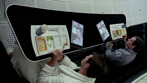 In the film, the astronauts used these devices to look at newspapers, live broadcasts and other things. More astounding though, is how the design is so close to a 2012 IPad or tablet