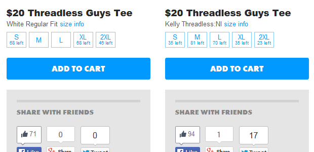 Threadless make buying from them almost too easy, information in the same place across their website and call to action buttons you always know where to go to find them.