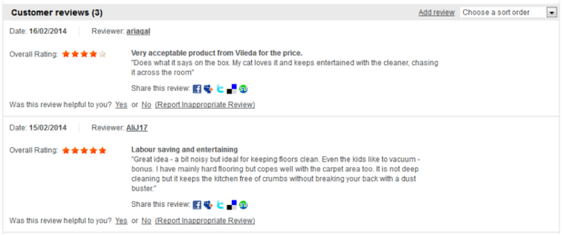 B&Q know a lot of their customers are not DIY experts and some of the products are quite expensive. Peer reviews help put my mind at ease.