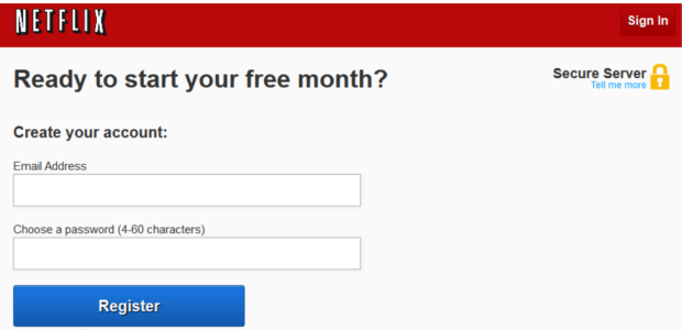 This example is taken from Netflix who inspired this article with their super simple sign-up process.
