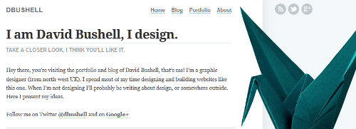 David Bushell (dbushell.com) is a web designer and front-end developer from the north-west of the UK and uses his website as a space for blogging, showcasing the projects he has worked on and reaching out to the design community with valuable information and resources.