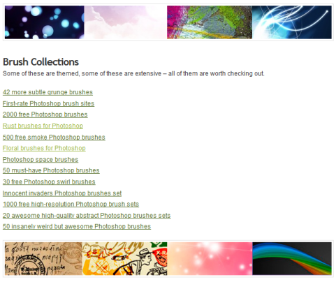 A screenshot of our Free Photoshop Brushes – 37 terrific links post