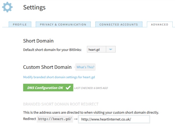 4. Once propagated, go back to Bit.ly and change the ‘Short Domain’ dropdown menu to your custom URL: