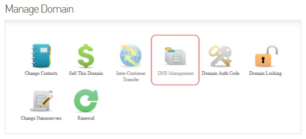 2. Select the domain you want from the drop-down box and click ‘Manage Now’, then ‘DNS Management’.
