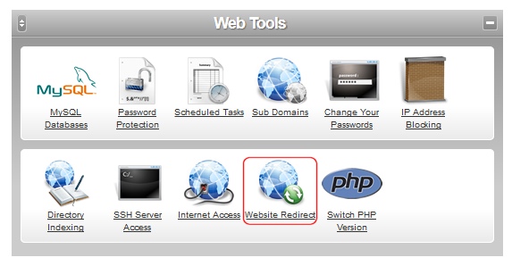 2. Choose ‘Website Redirect’ (under the ‘Web Tools’ heading):
