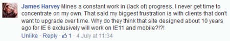 As long as you implement security updates and keep on top of significant new browser releases, there’s no need to feel the pressure to keep up with the Joneses of the design and development world. If you like to experiment and play around with the latest trends and technologies, there’s nothing wrong with that. But if it becomes a chore or a source of frustration, don’t be afraid to step back. Early adoption gives you bragging rights, but then so does a fast, optimised website with good UX and balanced browser and device compatibility.