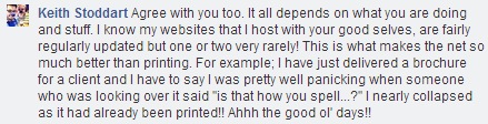 The responses were incredibly broad and threw up all kinds of interesting spinoff debates and questions. Should all websites be regularly updated? Is there a point when it becomes change for change’s sake? How many of us browse the net and think ‘If only my website looked like that’ when seeing someone else’s design? Where’s the line between self-imposed pressures and getting the job done to a good, practical standard without fruitlessly striving for unattainable perfection?