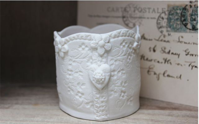 I think it’s the fact that I am producing something very personal and unique to my customers. I like to create something that echoes their ideas and input. That certain piece that I create, no one else will ever have it. From an imprint of lace from a wedding dress, to a special photograph fired onto porcelain, or your own handwriting placed on a ceramic envelope, any of my original pieces can be adapted to produce a personalised special keepsake that can be given as a gift or made for yourself.