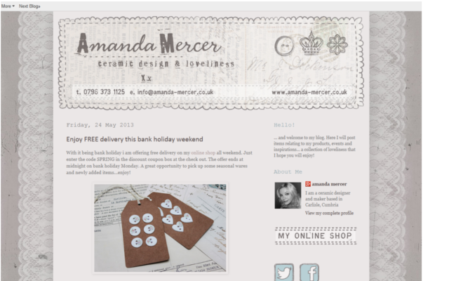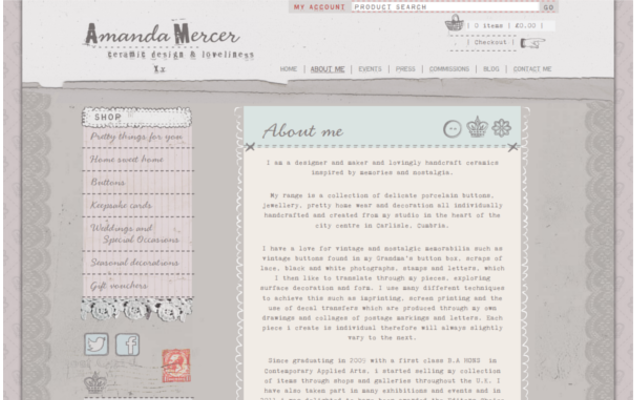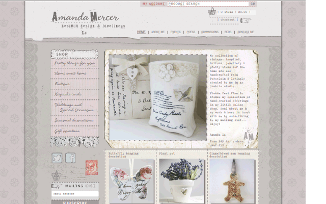 Amanda Mercer: We had detailed discussions about the look of the site and what I was specifically looking for. I wanted something that reflected my personal style, captured the delicacy of my work and complimented my products, which is exactly what was achieved.
