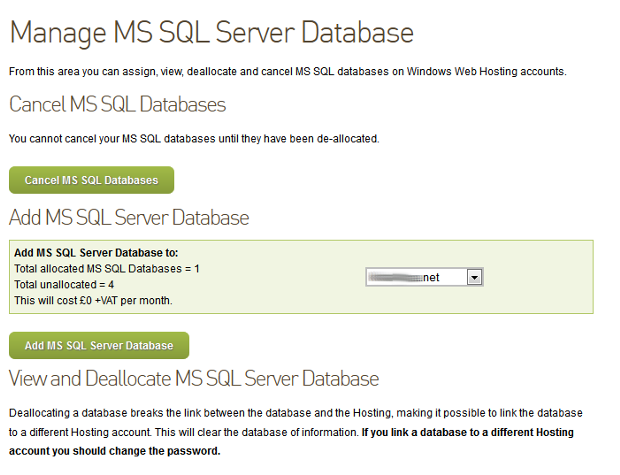 Additionally, you can now de-allocate an MS SQL database from a domain and re-allocate it to a different domain completely free of charge and without having to re-order it.
