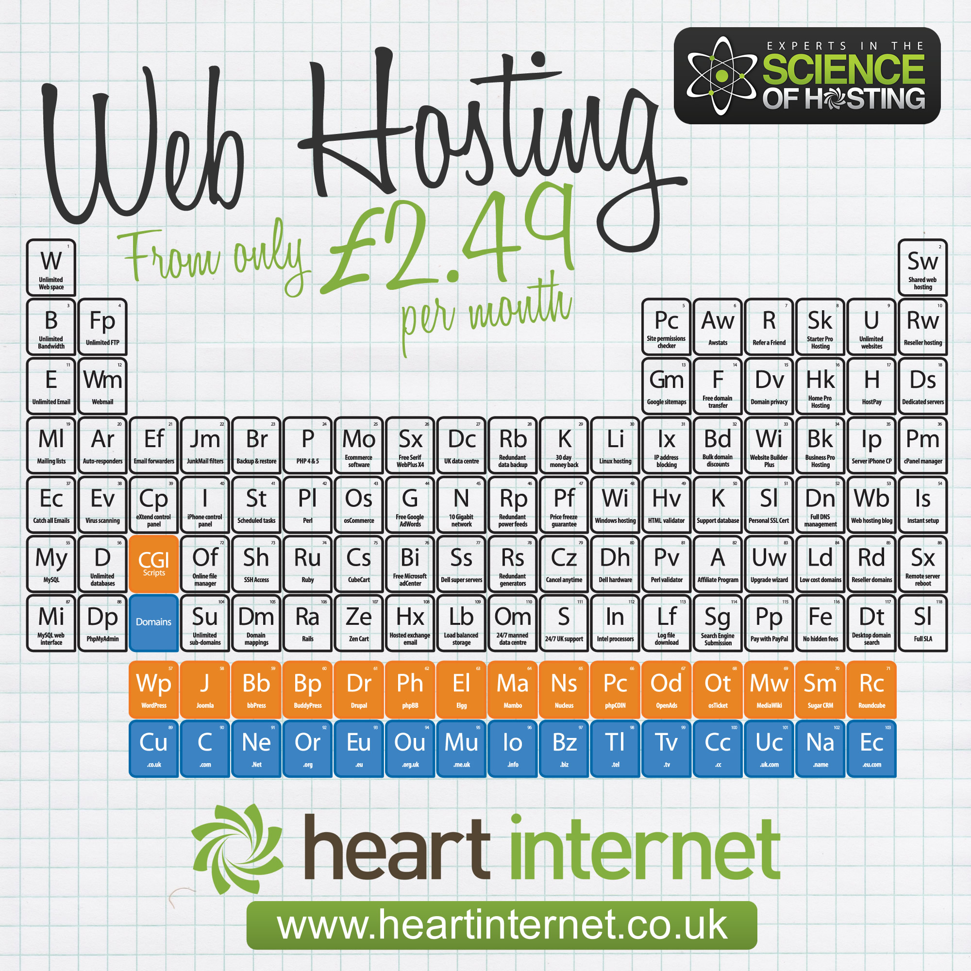 The Heart Internet Web Hosting Periodic Table (Click to enlarge in a new window and then click to zoom in)…