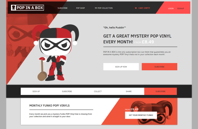 POP IN A BOX is a quirky and unique service that delivers a POP! vinyl figure to your door every month. If you’re on the hunt for Christmas presents for the geeks you love, look no further. With a simple but effective colour scheme and a clear layout on every page, POP IN A BOX is a great example of how to do ecommerce.