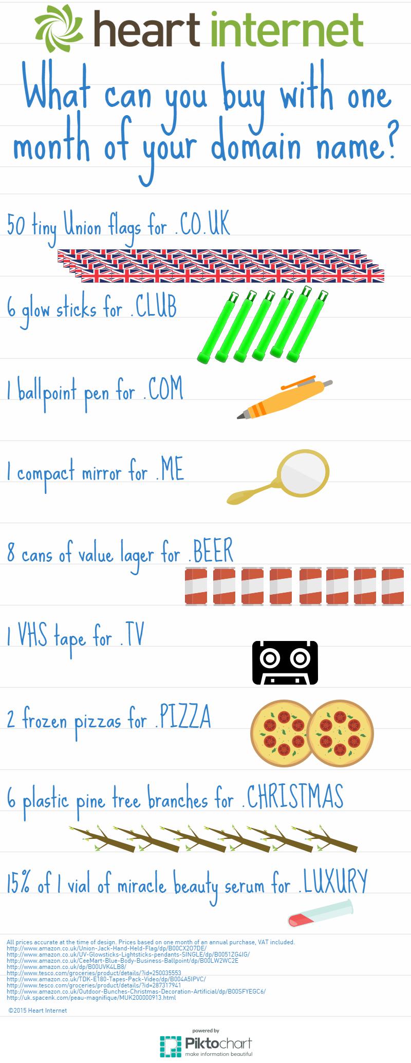 We think about it and there really isn’t a lot you can buy for a domain name. As proven by our infographic below: