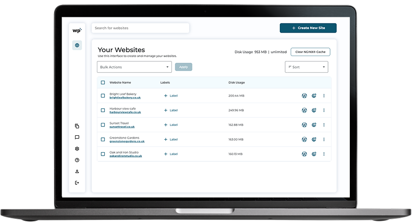 See what matters at a glance: domains, SSLs, storage, bandwidth and status. Stay in control of your managed WP setup.